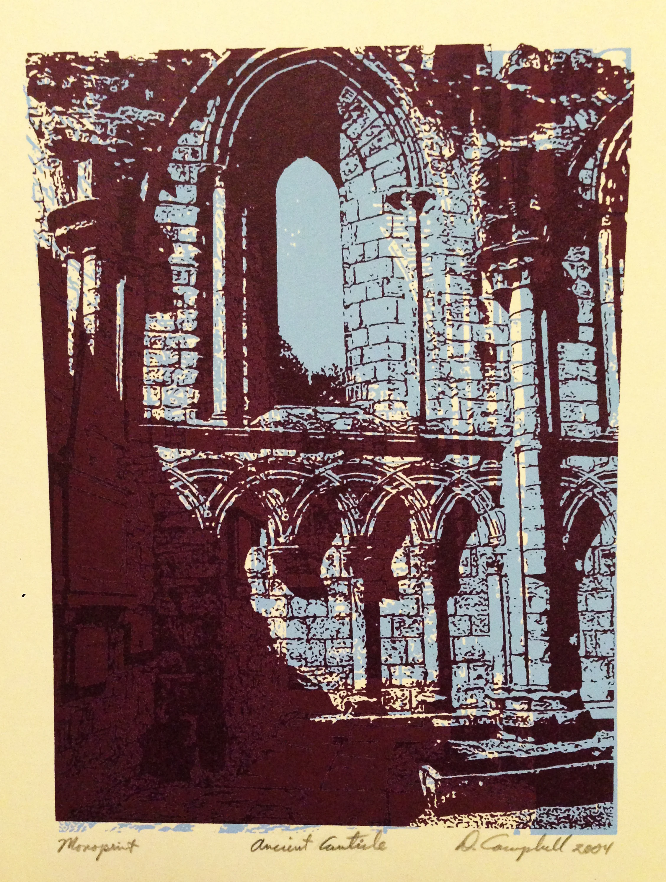 2004. 5”x4”. Pilgrimage to Rievaulx. Unframed monoprint. $125